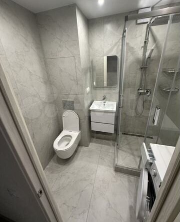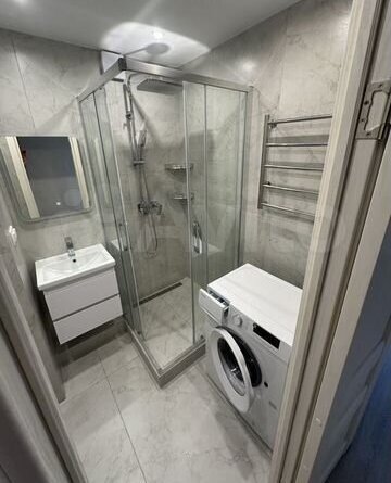 Санузел совмещенный, оснащен душевой кабиной и стиральной машиной. Из окон открывается приятный вид на двор. В 300 метрах парк и набережная с причалом для совершения прогулок.