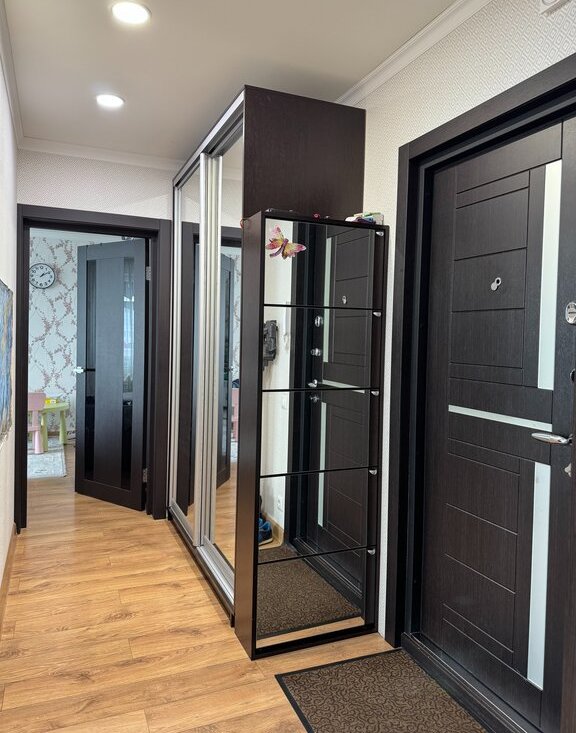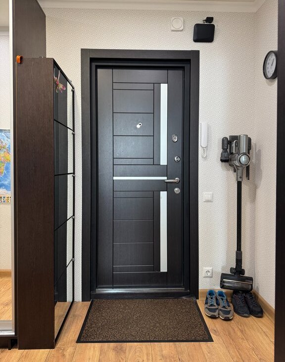 На этаже 4 квартиры, соседи хорошие, живут давно, собственники. Есть тамбурная дверь. Внизу консьерж.