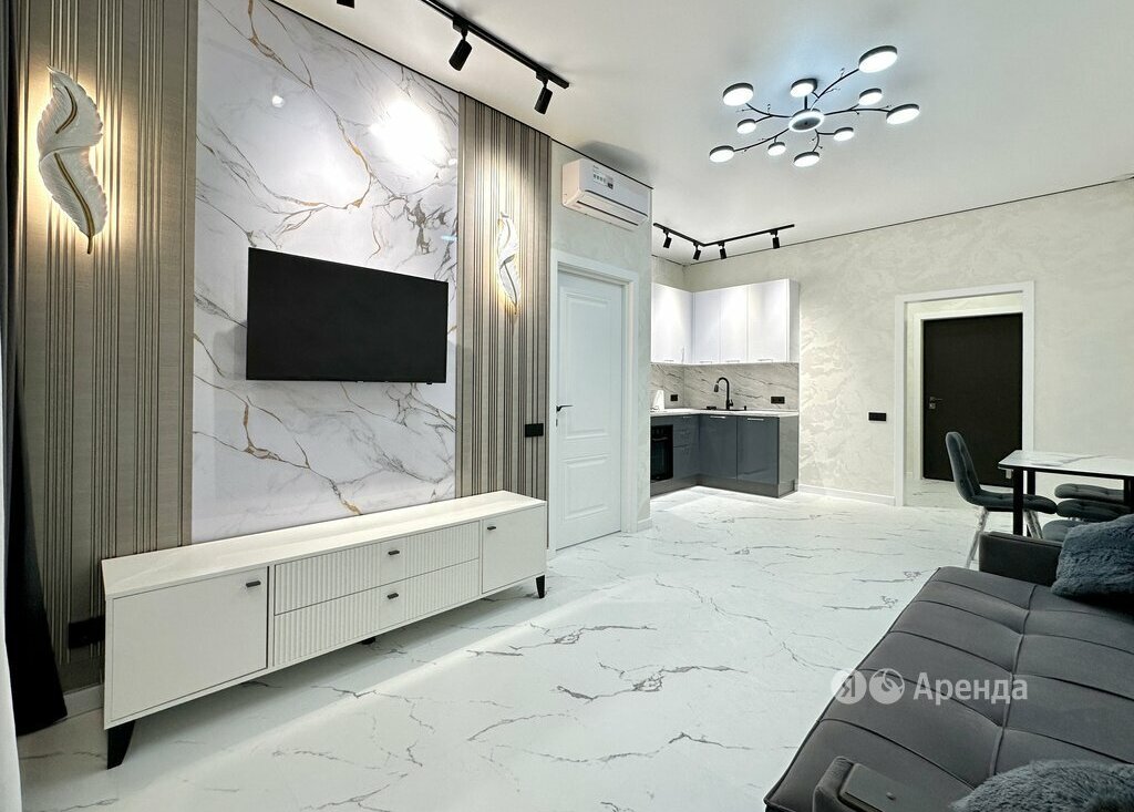Сдаётся 2-комнатная квартира площадью 47 кв.м. с дизайнерским ремонтом на 5 этаже в 14-этажном доме на срок от 11 месяцев. Из техники есть: