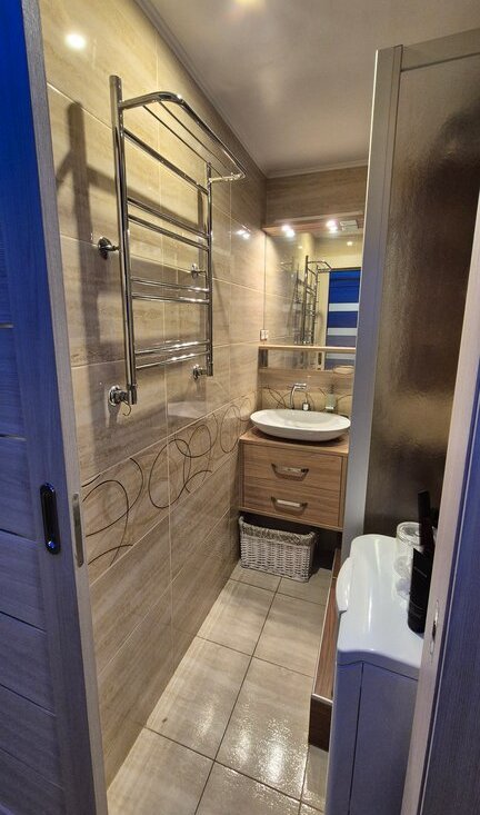 Санузел раздельный, оформлен в современном стиле с качественной сантехникой. заменена вся электропроводка, добавлено много розеток, заменены все трубы. По всему потолку установлены точечные светильники и rgb лента, с помощью, которой можно создать подходящую атмосферу во всей квартире. В квартиру заведено оптоволокно, быстрый интернет обеспечен. Из окон открывается вид на тихий двор, где расположена спортивная и детская площадки. Дом панельного типа, есть два пассажирских лифта. Парковка открытая во дворе, много мест, за 1.5 года не возникало проблем с парковкой, в любое время дня и ночи пара мест рядом есть всегда.