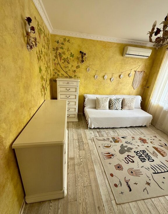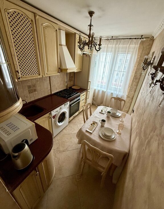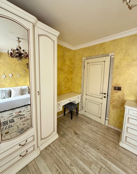 В квартире 2 комнаты, кухня и совмещенный сан.узел. В квартире есть двухспальная кровать с ортопедическим матрасом, раскладной диван, 2 вместительных шкафа и 1 шкаф для верхней одежды (можно использовать по своему усмотрению), 3 комода, 2 прикроватные тумбочки, столик (можно использовать как рабочий).