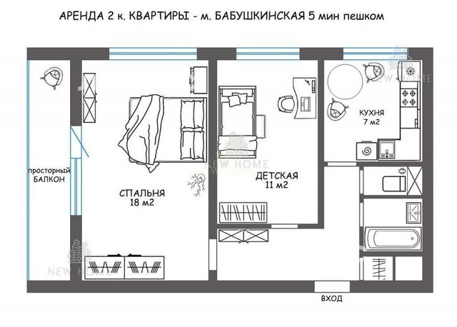 АРЕНДА 2 к. КВАРТИРЫ - м. БАБУШКИНСКАЯ 5 мин пешком