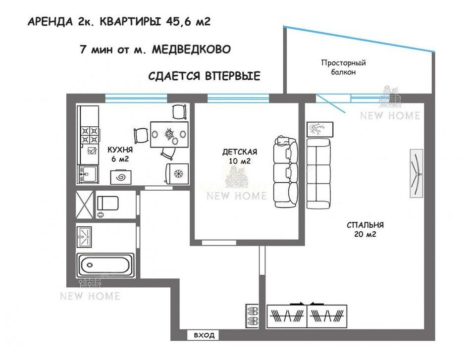 АРЕНДА 2к КВАРТИРЫ 45,6 м2 со СВЕЖИМ РЕМОНТОМ
