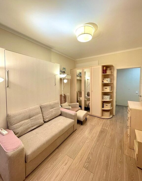 Продаются уютные светлые 2-х комнатные апартаменты квартирного типа. Жилые комнаты оснащены трансформерами - вертикальными шкаф-кроватями с подъёмным механизмом и ортопедическими матрацами. В комнатах множество зон хранения. Просторная кухня оборудована кухонным гарнитуром с бытовой техникой (холодильник/морозильник, варочная панель, СВЧ-печь, духовой шкаф, посудомоечная машина, кондиционер). Полы на кухне – плитка из керамогранита. В ванной комнате душевая кабина. В санузле ИНФРАКРАСНАЯ САУНА, которая служит приятным бонусом. Лоджия утеплена: полы с подогревом. Все окна выходят в тихий и благоустроенный двор с ландшафтным озеленением. Квартира с евроремонтом, что позволит вам сразу заехать и жить без вложений. В коридоре установлен домофон. В квартире никто не курил, домашние животные не проживали, квартира не угловая, соседи тихие и доброжелательные.