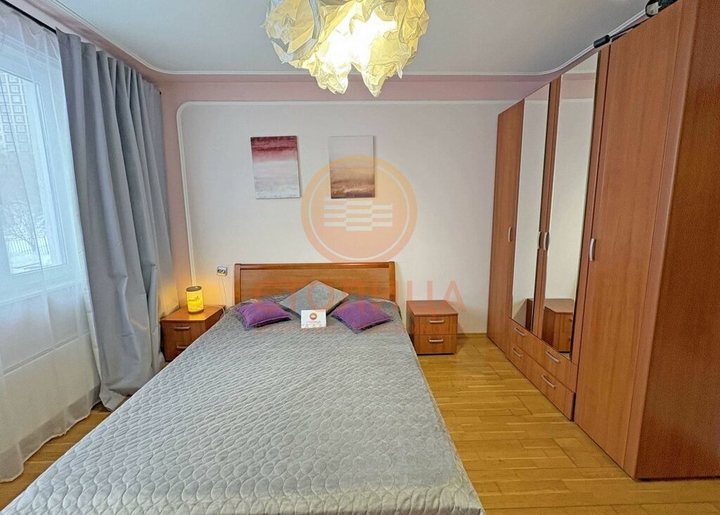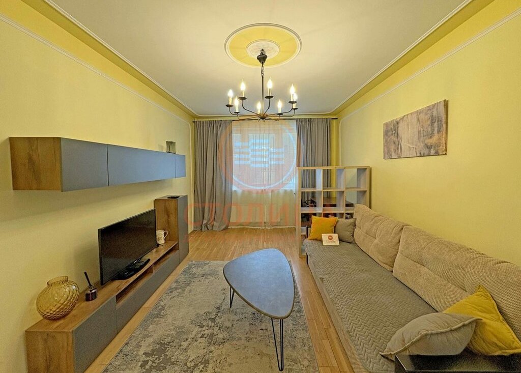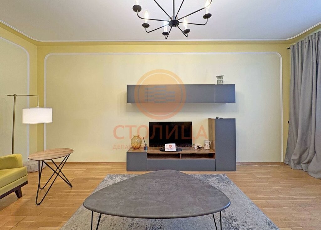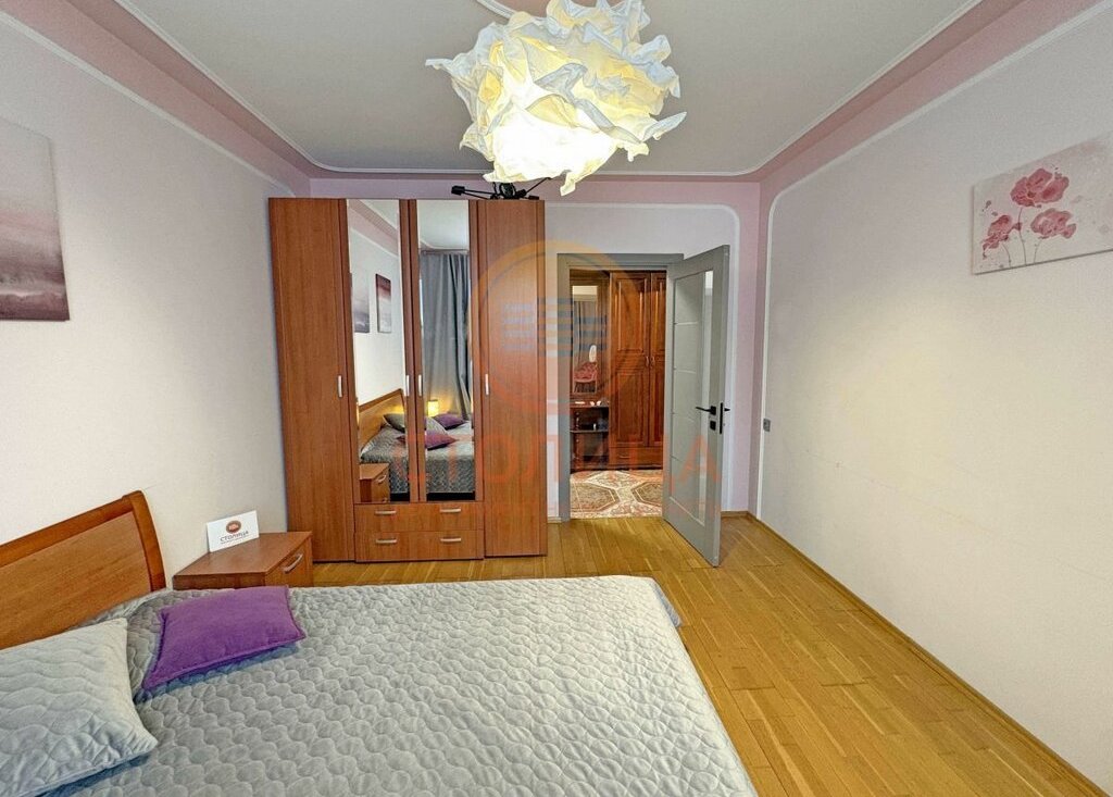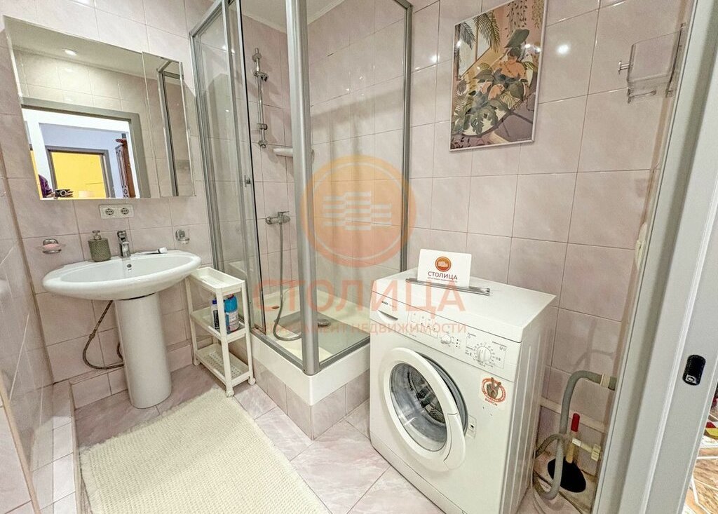 Квартира полностью меблирована и готова к проживанию: всё необходимое для жизни и работы уже есть. В спальне вас ждёт комфортная двуспальная кровать и вместительный шкаф, в гостиной — уютный диван, кресло, компьютерный стол, телевизор и кондиционер. На кухне имеются стол и стулья, а в коридоре установлен вместительный шкаф‑купе и небольшая гардеробная.