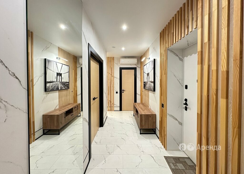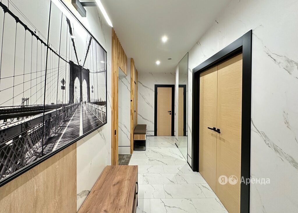 Сдаётся 2-комнатная квартира площадью 53 кв.м. с дизайнерским ремонтом на 27 этаже в 31-этажном доме на срок от 11 месяцев. Из техники есть: