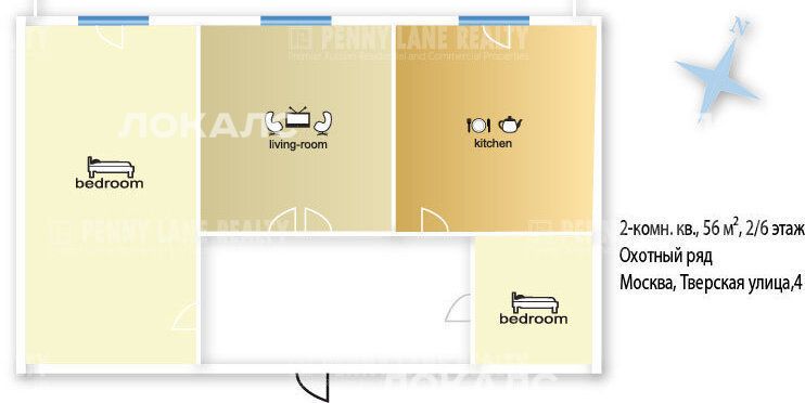 2-комнатная квартира: Москва, Тверская улица, 4 (56 м²)