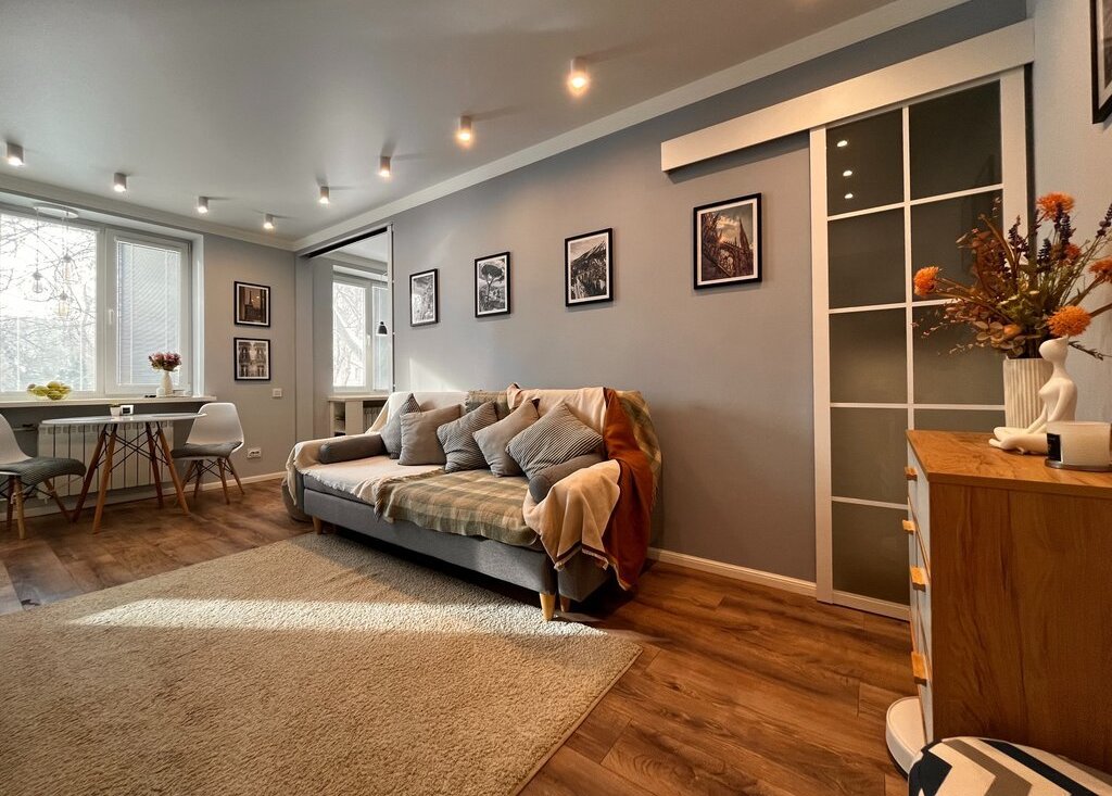 Планировка: Грамотно использован каждый метр. Просторная кухня-гостиная (19,1 м.кв.) — идеально для приема гостей. Уютная спальня (11,8 кв.м.) с отдельной гардеробной (2,7 кв.м.). Совмещенный санузел с новой сантехникой.