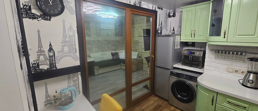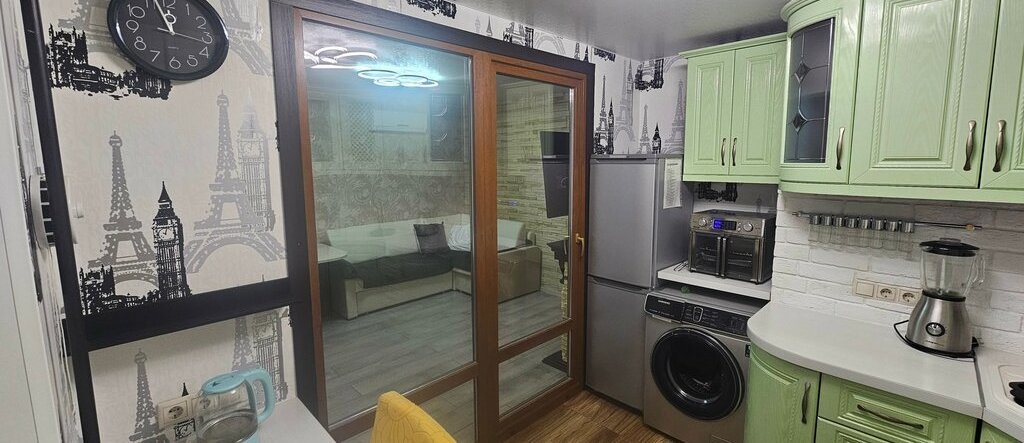• Продуманный интерьер: Просторная кухня с техникой (газовая варочная панель, духовка, вытяжка), отдельная гардеробная в спальне (1.7 м), эргономичная ванная комната.