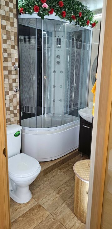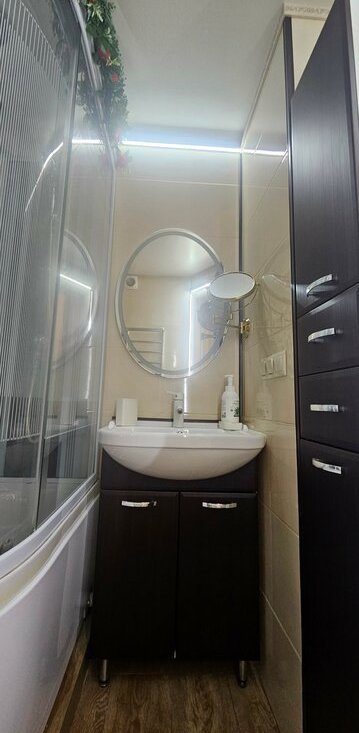 • Полное оснащение: В квартире остается современная мебель и техника (2023-2025 гг.) — 2 телевизора, 2 кондиционера, холодильник, стиральная машина, электрокамин, душевая со встроенной электрикой.