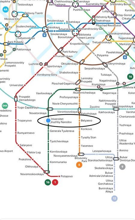 RUDN is in front + many Universities nearby. Developed area. There’re several Malls around. Plenty of shops / supermarkets.