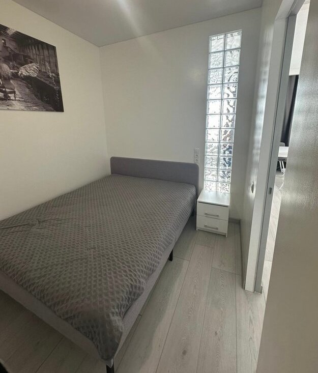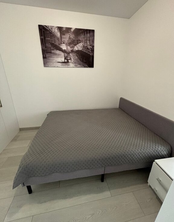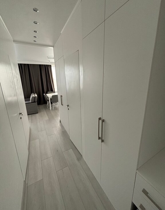 Удобная встроенная кухня укомплектована современной техникой: индукционная панель, духовка, холодильник, вытяжка, посудомойка, микроволновка. В спальне 2-х спальная кровать с ортопедическим матрасом ascona, подушки и одеяла той же фирмы и большой шкаф.