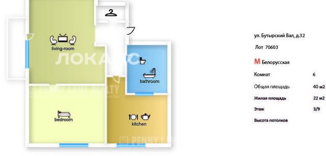 2-комнатная квартира: Москва, улица Бутырский Вал, 32 (40 м²)