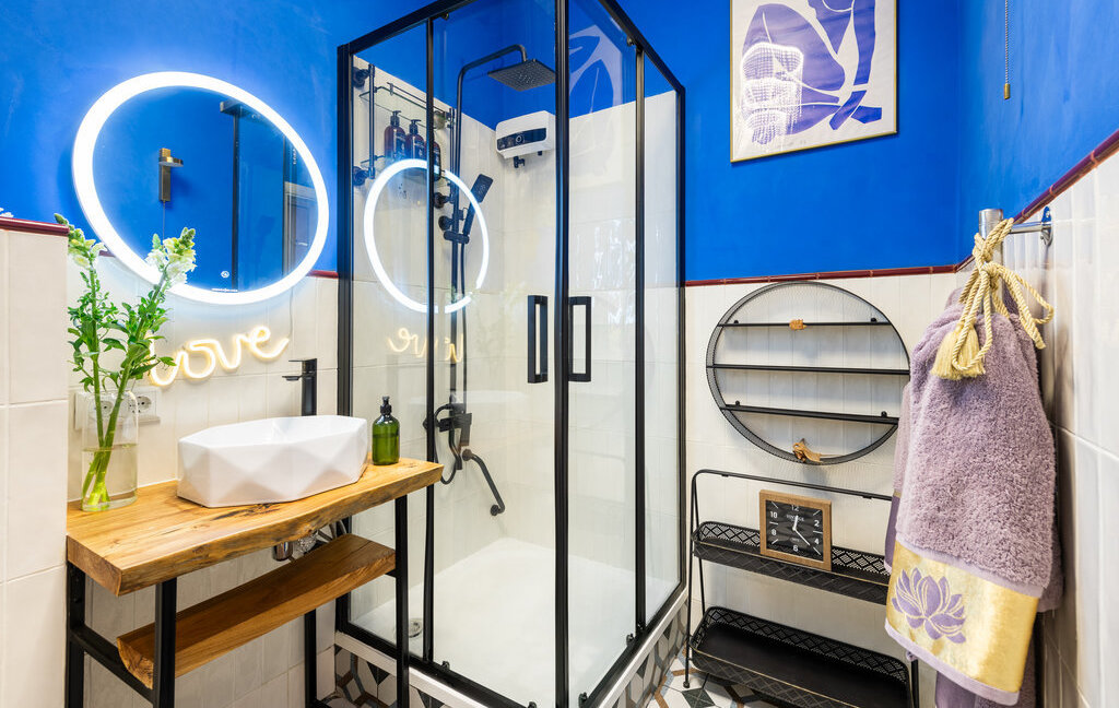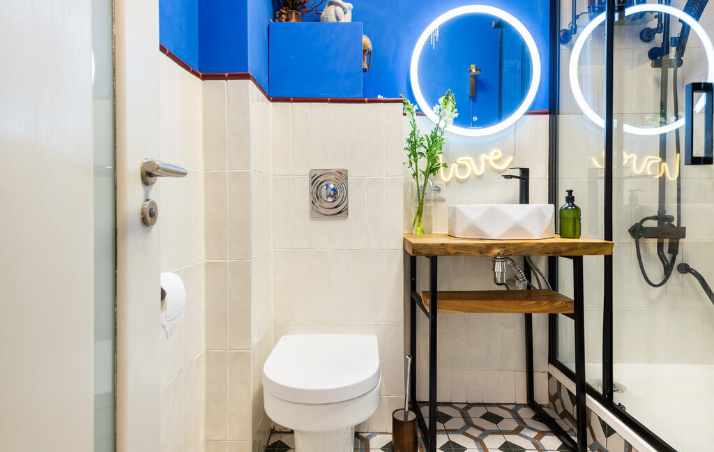 Ванна - душевая кабина, унитаз инсталляция, испанская керамическая плитка, тёплый пол, водонагреватель.