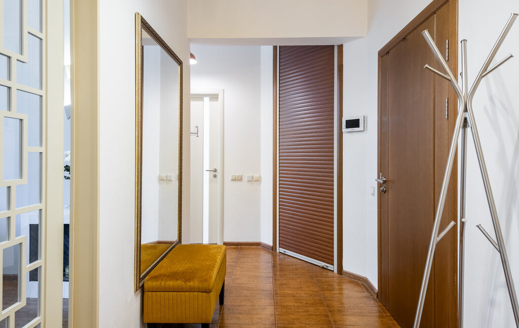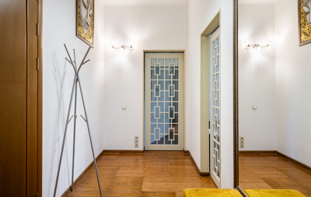 В квартире есть очень вместительная гардеробная в одной из комнат, куда помещается огромное количество вещей.