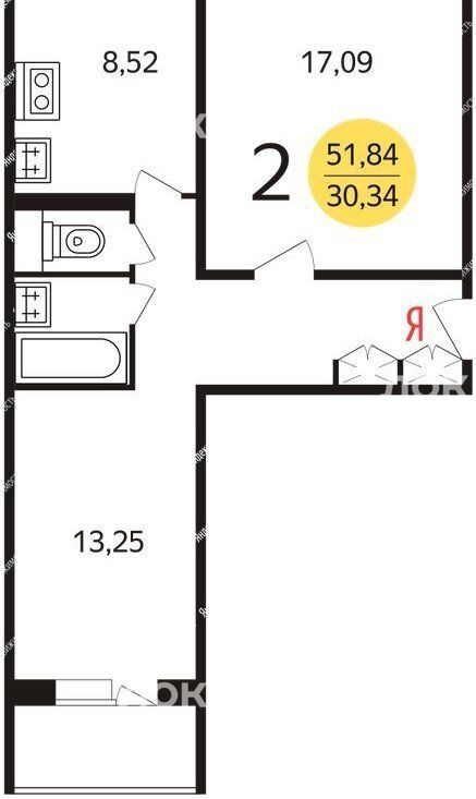 2-комнатная квартира: Москва, улица Декабристов, 36 (52 м²)