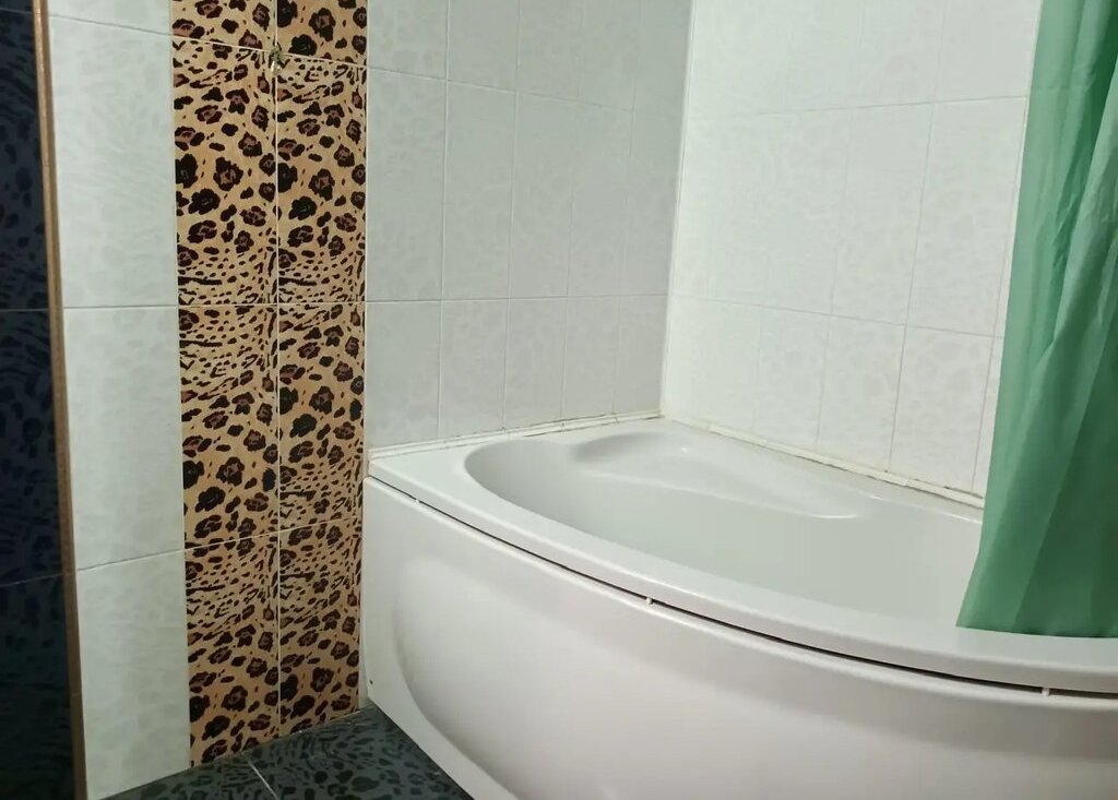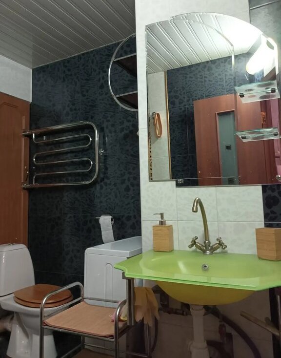 Санузел с/у : большая ванна , стиральная машина . туалет, раковина.