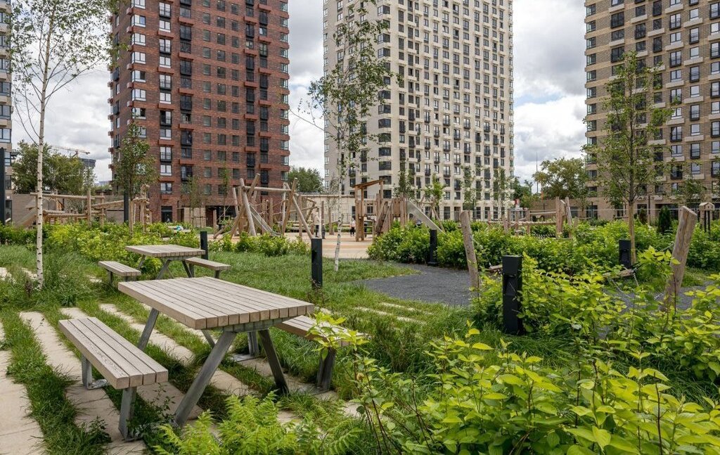 Закрытая охраняемая территория, благоустроенный двор, видеонаблюдение. Домофон в подъезде и на этаже. Ухоженная внутренняя территория: зеленые зоны для отдыха, а также площадки для игр и спорта.