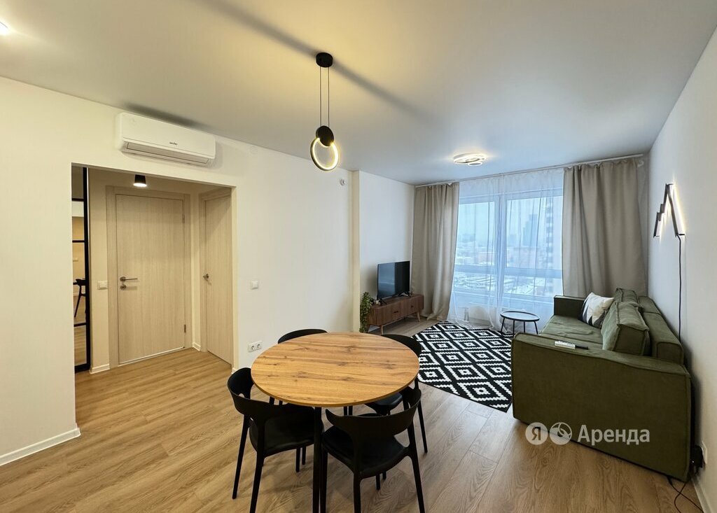 Сдаётся 2-комнатная квартира площадью 57 кв.м. с евроремонтом на 21 этаже в 33-этажном доме на срок от 11 месяцев. Из техники есть: