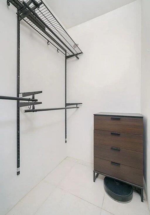 Вторая гардеробная большая и многофункциональная. Там находятся стиральная и сушильная машинки на 10 кг, мощный стационарный отпариватель для одежды.