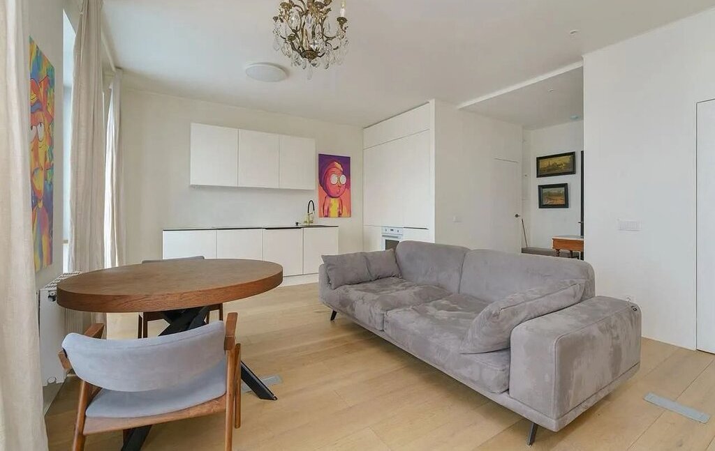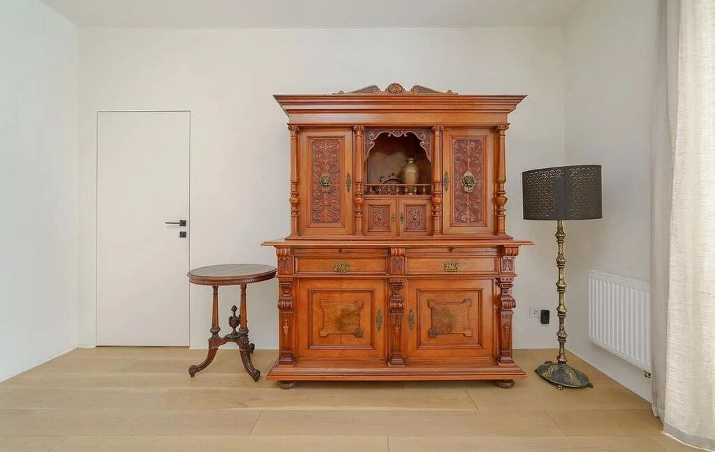 Простота ремонта разбавлена антикварной мебелью, элементами mid сеntury и стильными товарами IКЕА. Центр притяжения интерьера - буфет 19 века. Получилось спокойное, современное пространство, где гармонично сосуществуют разные эпохи.