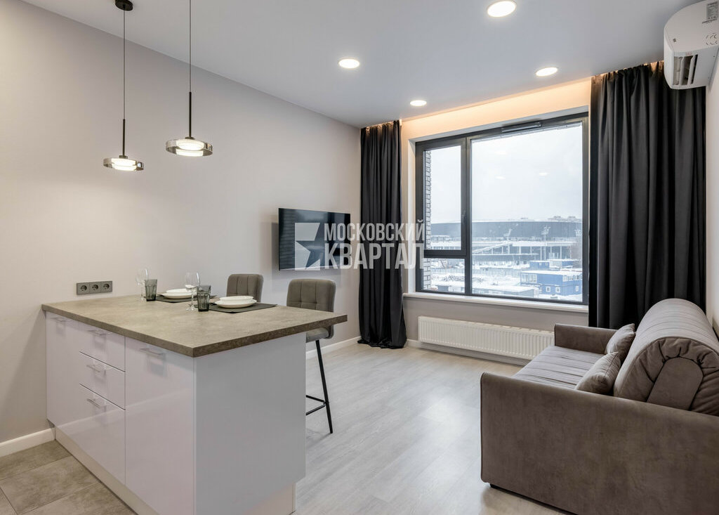 Новый современный ремонт (никто не жил до вас), высокие потолки 3 м, кухня-гостиная и изолированная спальня, гардеробная, совмещенный с/у. Вся необходимая техника: стиральная машина с функцией сушки, холодильник, посудомоечная машина, варочная поверхность и духовой шкаф с СВЧ функцией, кондиционеры, телевизоры и тд. Кровать с широким матрасом 180*200.