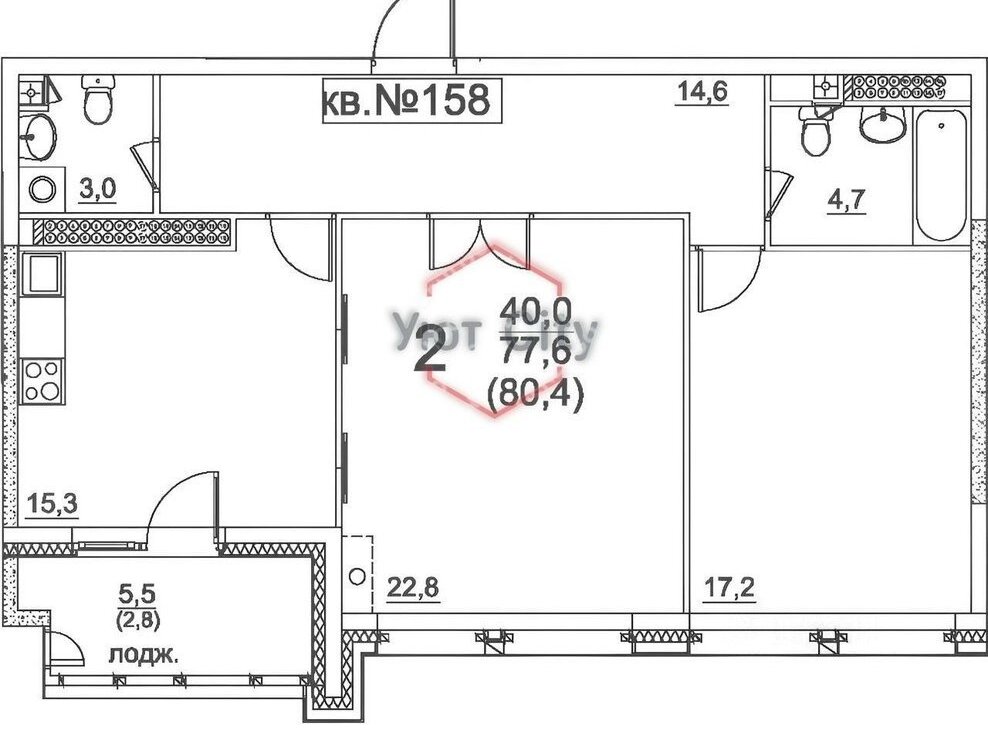 2-комнатная квартира: Москва, улица Эльдара Рязанова, 2 (80.8 м²)