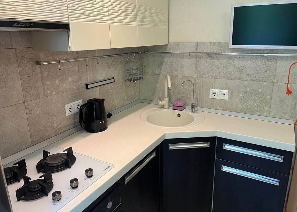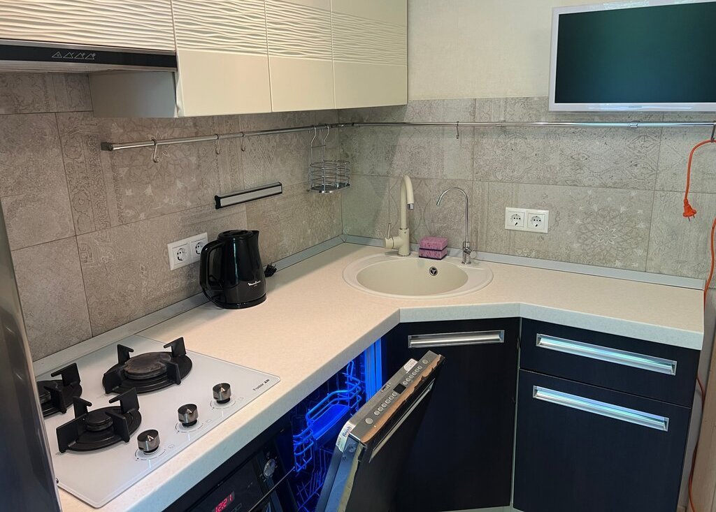 В квартире есть все необходимое: кондиционер, посудомоечная машина, газовая плита, электрическая духовка, холодильник, стиральная машина, микроволновая печь, телевизор, пылесос.