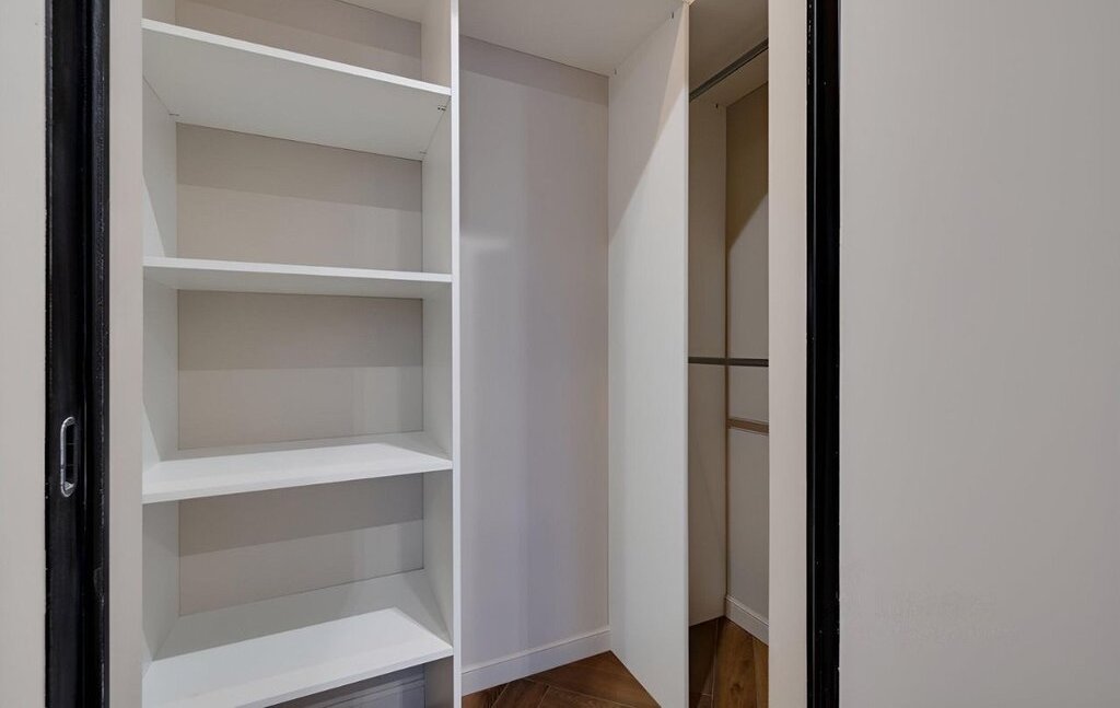 Жилое пространство укомплектовано всей необходимой бытовой техникой надежных производителей: встроенная кухня с индукционной панелью, духовым шкафом, холодильником, посудомоечной машиной, а также стиральная машина. Системы хранения организованы грамотно — предусмотрены встроенный шкаф и две отдельные гардеробные. Дополнительно на этаже есть индивидуальная кладовая около 2 кв.м. для хранения сезонных или объемных вещей.