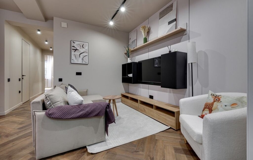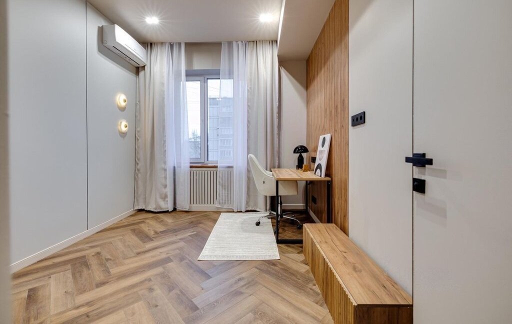 Квартира после капитального обновления, ранее не эксплуатировалась. В процессе ремонта были полностью обновлены инженерные системы: электрика, сантехника, интернет-разводка, установлены новые радиаторы отопления. В отделке использованы износостойкие и практичные материалы — напольное покрытие из кварцвинила высокого класса, современные стеклопакеты, утепленный и остекленный балкон. В санузле выполнена отделка керамогранитом.