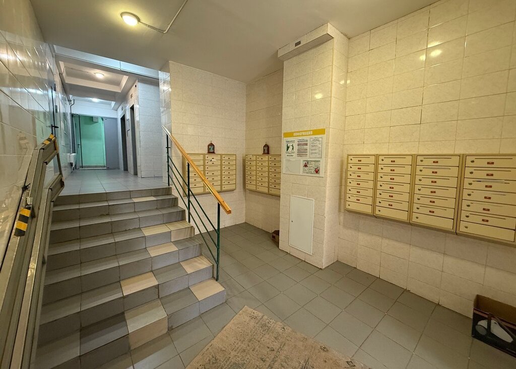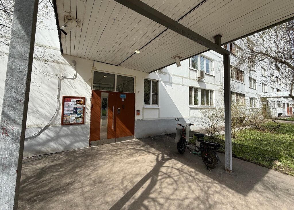 Панельный дом. Огороженная территория - въезд через шлагбаум. Парковка стихийная - места есть. Чистый подъезд. Закрытый тамбур. Зеленый двор.