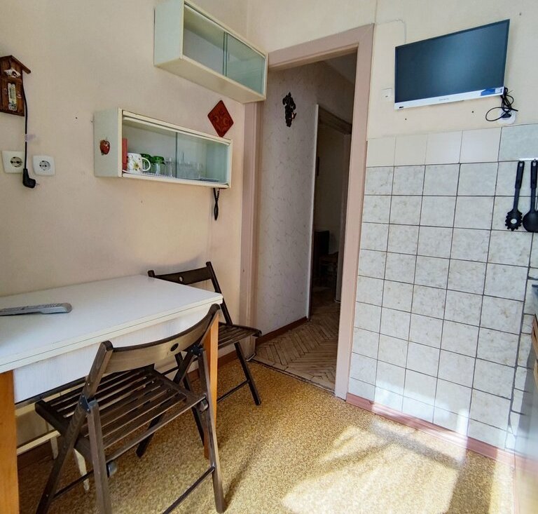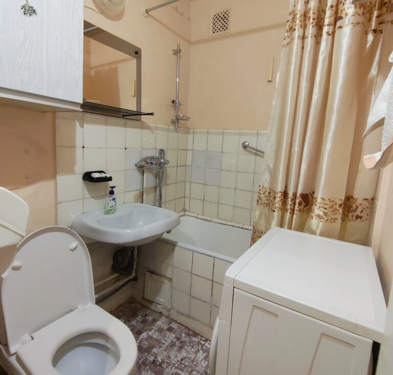 Есть всё необходимое для комфортного проживания. Два телевизора, 2х камерный холодильник, СВЧ, стиральная машина, диван 1 спальный, 1 стальная кровать, много шкафов для одежды.