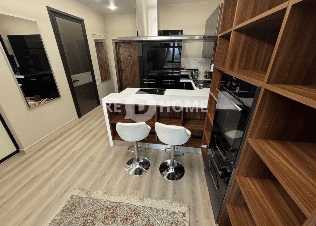 Полностью укомплектована мебелью и техникой: кондиционер, кухня с техникой, места хранения, готова к заселению