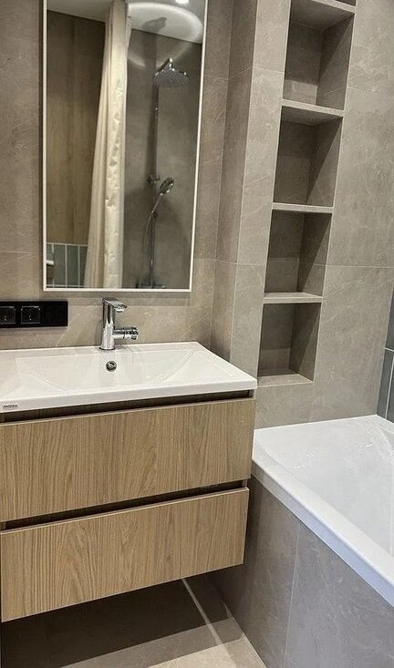 - Современный дизайнерский ремонт с продуманной разнообразной подсветкой и качественными материалами;