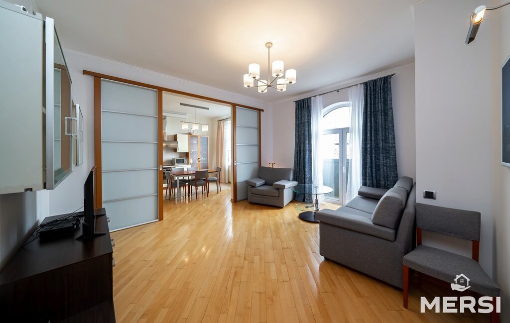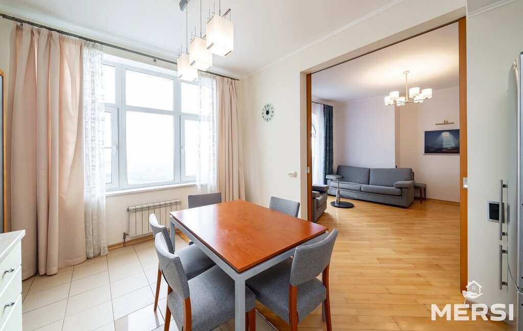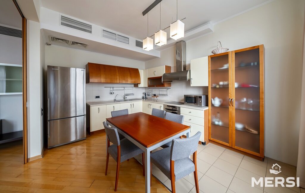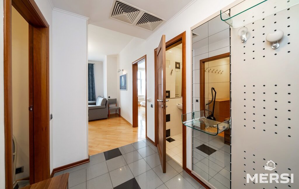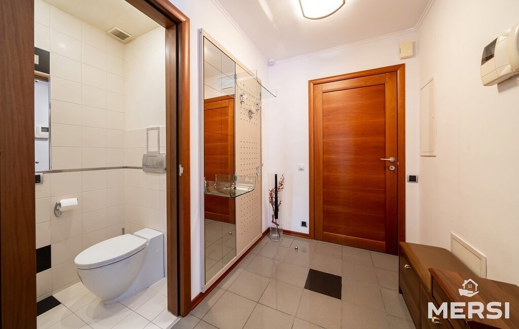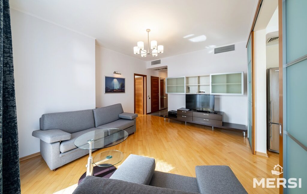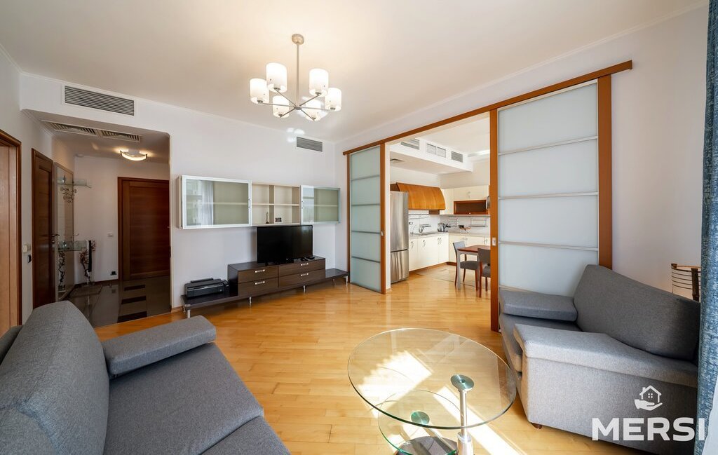 Квартира после качественного ремонта в светлых пастельных тонах . Полы паркет-плитка с подогревом. Практичная функциональная планировка - СТУДИО: Кухня + гостиная - большая СПАЛЬНЯ С САНУЗЛОМ (ванна) и гардеробной. Лоджия. При желании кухню можно изолировать от гостиной с помощью раздвижных дверей. Просторный холл. Оборудованная ГАРДЕРОБНАЯ комната. Современная мебель и техника от ведущих компаний. 1.5 санузла. Кондиционеры. Посудомоечная машина. Привлекательные интерьеры.