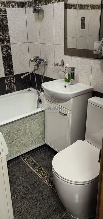 Санузел совмещенный, оборудован ванной и стиральной машиной. Балкон выходит во двор, доступна открытая парковка, всегда есть места.
