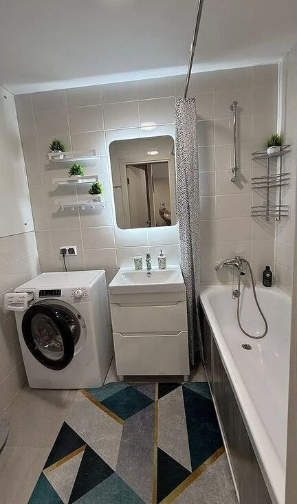 -Ванная комната и туалет совмещенные, имеется стиральная машинка со встроенной сушилкой,полотенцесушитель от сети.Также есть пылесос,утюг,доска для глажки.