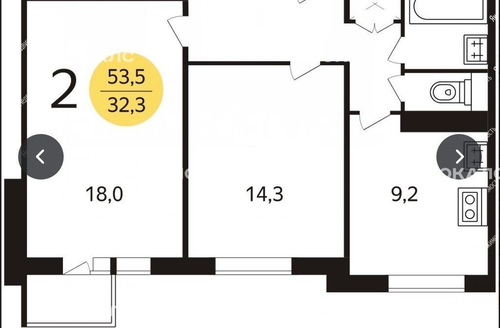 2-комнатная квартира: Москва, улица Миклухо-Маклая, 30 (53.7 м²)