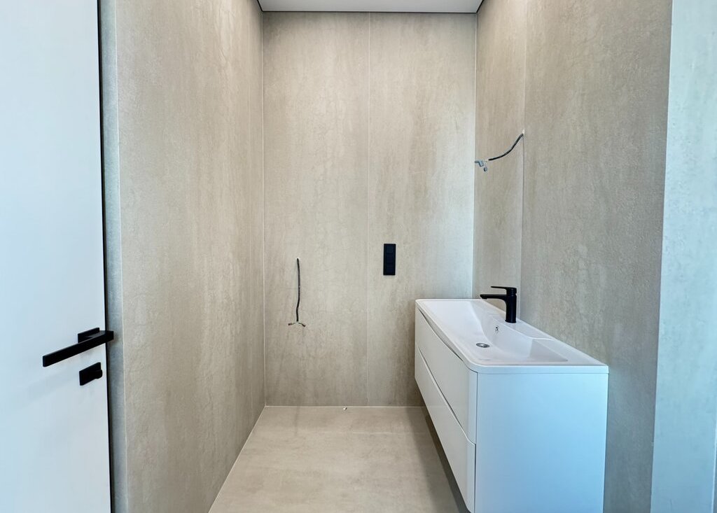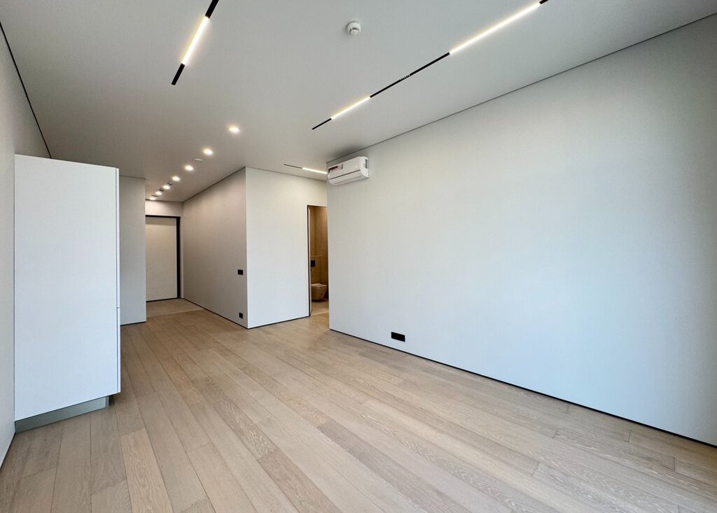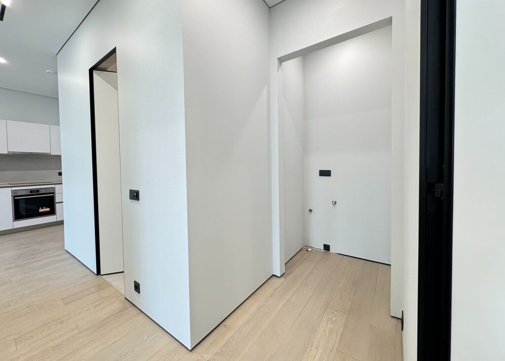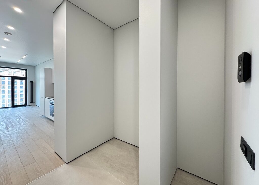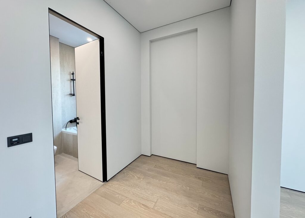 ОТДЕЛКА: В квартире выполнена отделка премиум-класса от застройщика, включающая полностью готовые санузлы с установленной сантехникой, душевыми кабинами и ванной. Стены покрыты финишной краской. Установлены скрытые межкомнатные двери и напольное покрытие из паркетной доски, смонтирован скрытый плинтус. Кухонная зона оборудована гарнитуром со встроенной бытовой техникой: холодильником с морозильной камерой, посудомоечной машиной, духовым шкафом и варочной панелью, вытяжкой. В санузлах и прихожей установлена система "теплый пол". Реализовано точечное освещение. В холле предусмотрен мастер-выключатель.