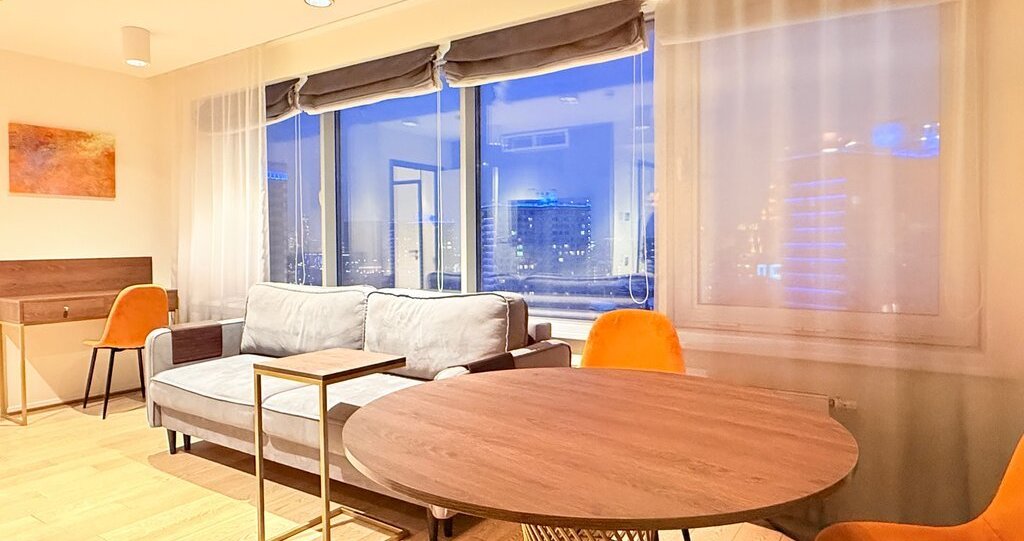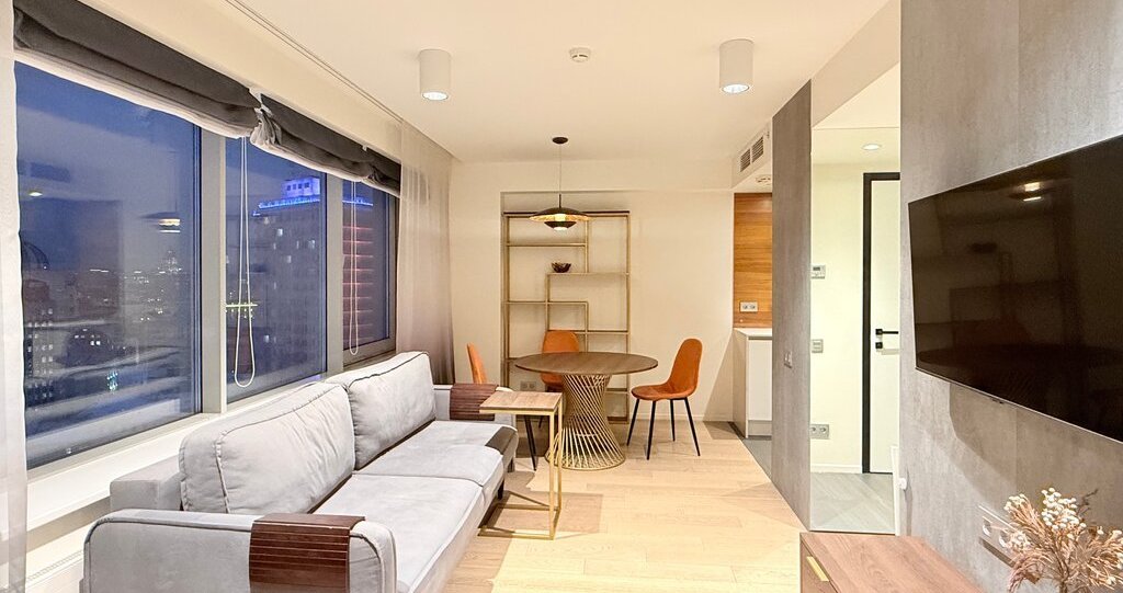 Предлагаем вам арендовать стильные апартаменты в самом сердце Москвы, на улице Новый Арбат. Общая площадь составляет 40 кв. м. Апартаменты расположены на 19 этаже 26-этажного дома. До станции метро "Арбатская" всего 9 минут пешком.