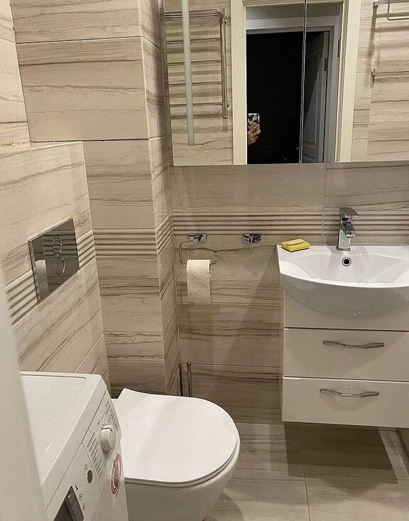 Санузел совмещенный, выполнен в современном стиле с качественной отделкой. В прихожей вместительный шкаф для одежды.