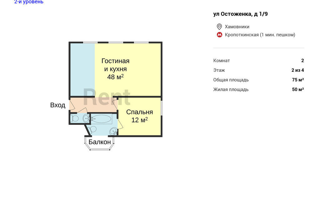 2-комнатная квартира: Москва, улица Остоженка, 1/9 (75 м²)