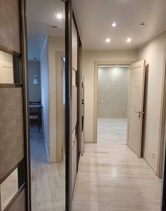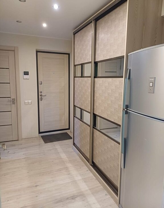 - Большие встроенные шкафы в коридоре и комнате.