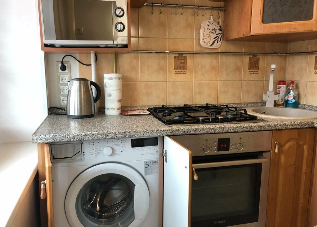 - Встроенная техника на кухне (духовой шкаф, вытяжка, СВЧ-печь, стиральная машина, фильтр для воды),