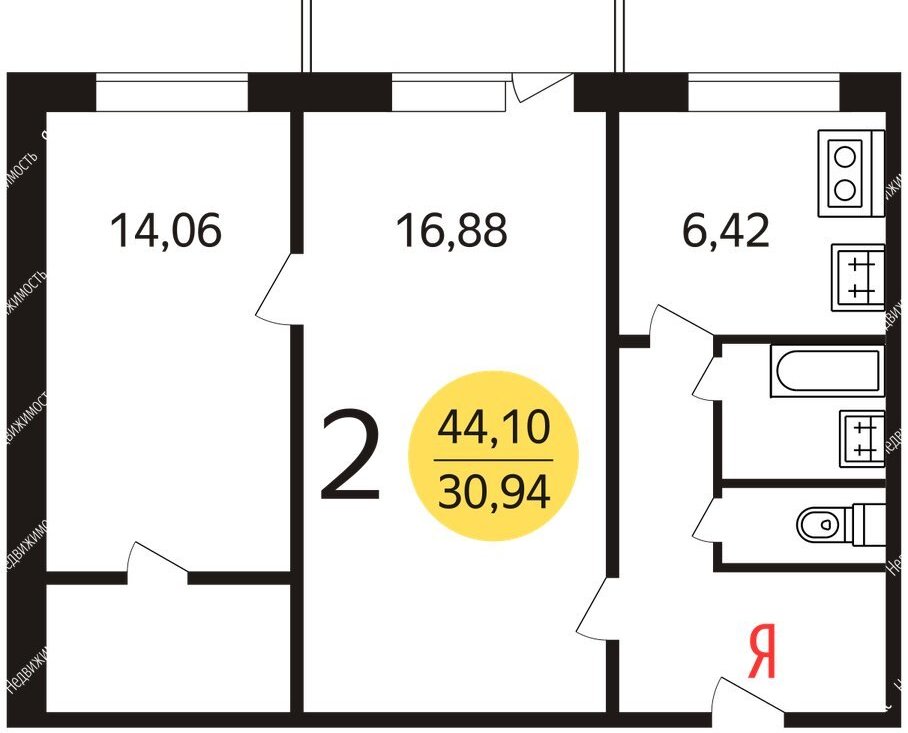 2-комнатная квартира: Москва, улица Петра Романова, 6 (44.1 м²)