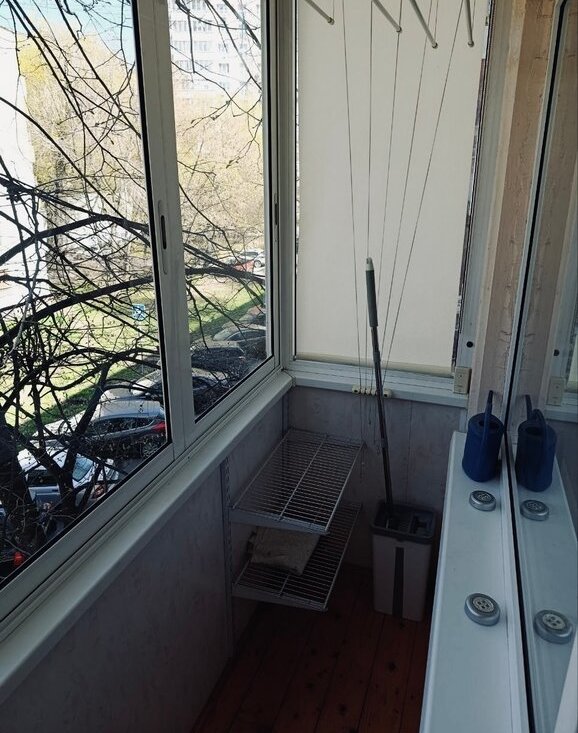 Просторный балкон с прекрасным видом на зеленую зону и возможность разместить любимые растения.