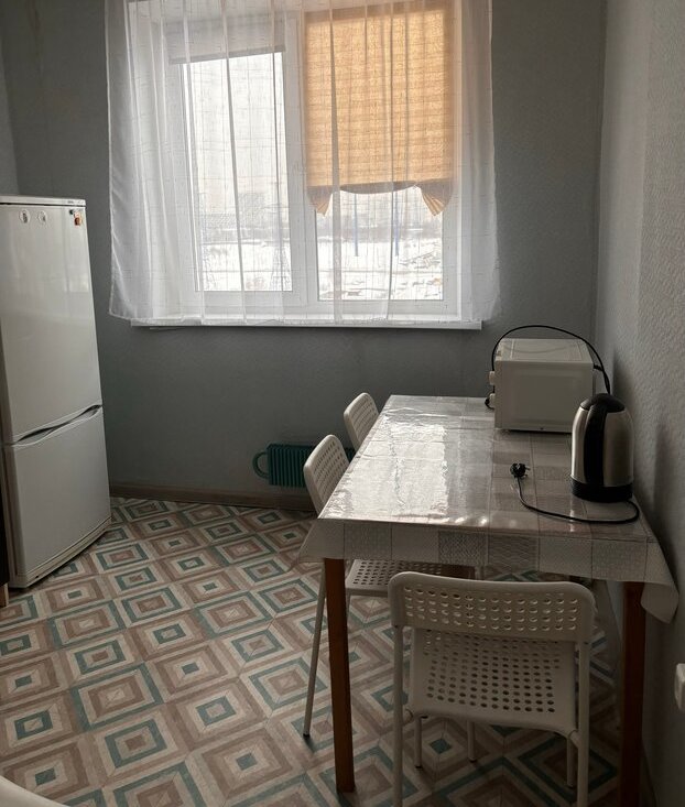 В квартире установлены стеклопакеты, Есть холодильник, плита, микроволновая печь, чайник, минимальный набор посуды, стиральная машина.