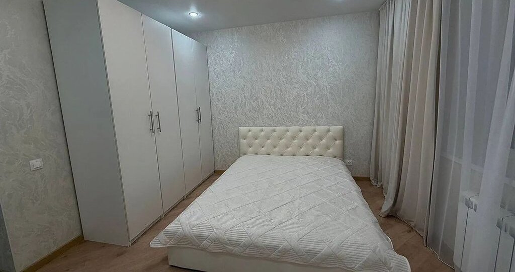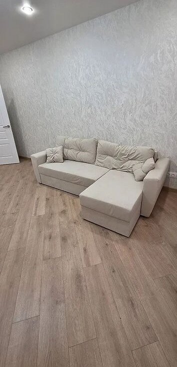 В квартире выполнен дизайнерский ремонт. Комнаты изолированные, что обеспечивает комфорт и приватность. В гостиной установлен угловой диван и телевизор. В спальне большая двуспальная кровать и вместительные шкафы.