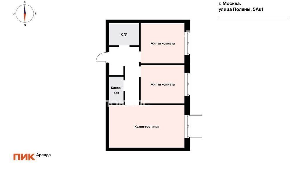 2-комнатная квартира: Москва, улица Поляны, 5Ак1 (57.1 м²)