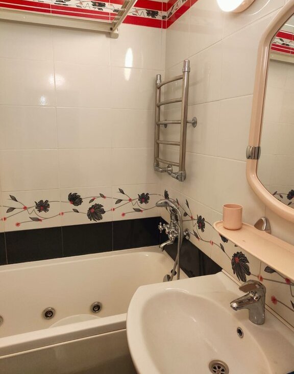 В квартире раздельный санузел, застеклённый балкон, удобный большой шкаф-купе для хранения вещей. Квартира оборудована всем необходимым для жизни: кухонная мебель, стиральная машина, ванна с гидромассажем, холодильник, вытяжка, электрическая варочная панель, посудомоечная машина, кондиционер, пылесос, гладильная доска, утюг, электрочайник. В маленькой комнате – 2 полутора спальные кровати.